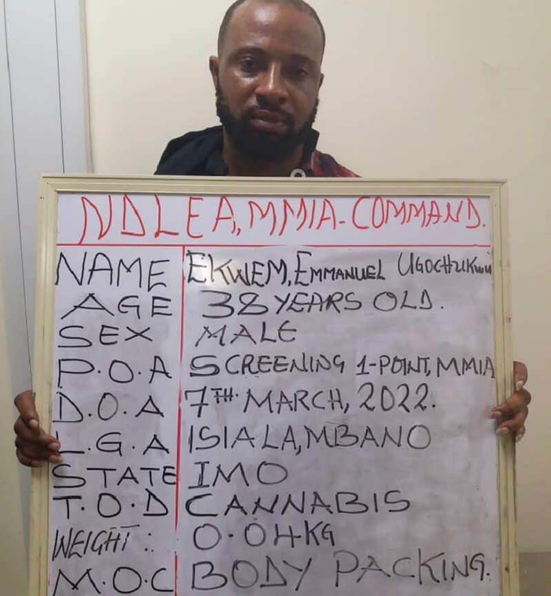 A statement on Sunday March 13, 2022 by Femi Babafemi, the NDLEA's Director, Media and Advocacy, said the youthful and popular preacher who has his church headquarters in Isuaniocha, Mgbakwu road, Awka, Awka North LGA, Anambra state and two other branches in Lagos and Abuja, was arrested on Monday 7th March, during the outward clearance of passengers on Ethiopian Airlines flight to Nairobi via Addis Ababa.