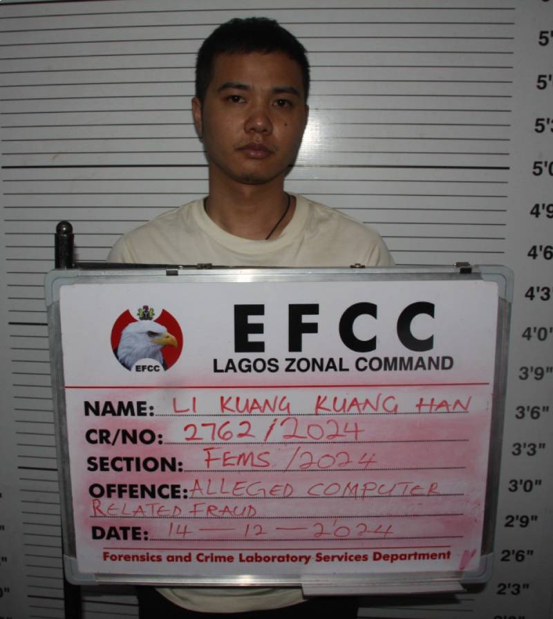 The Lagos Zonal Directorate 1 of the Economic and Financial Crimes Commission, EFCC, on Thursday, May 15, 2025, arraigned a Chinese, Li Kuang Kuang before Justice Daniel Osiagor of the Federal High Court sitting in Ikoyi, Lagos. He was arraigned on a one-count charge of alleged cybercrime.