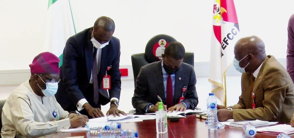 Speaking during a ceremony held at the headquarters of the EFCC, Jabi, Abuja, EFCC Executive Chairman, Abdulrasheed Bawa expressed delight that the two neighbours are coming together to harness their resources for mutual benefit. He said the MoU will afford interns from the University the opportunity to better appreciate the work of the EFCC, assuring that “the content of the MoU will be implemented”.