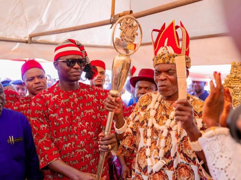 Nwifuru presented a certificate of recognition and a staff of office to the new monarch (his father) which he noted, was in accordance to the Law establishing Ebonyi State Local Government and Chieftaincy Matters, Cap 146.