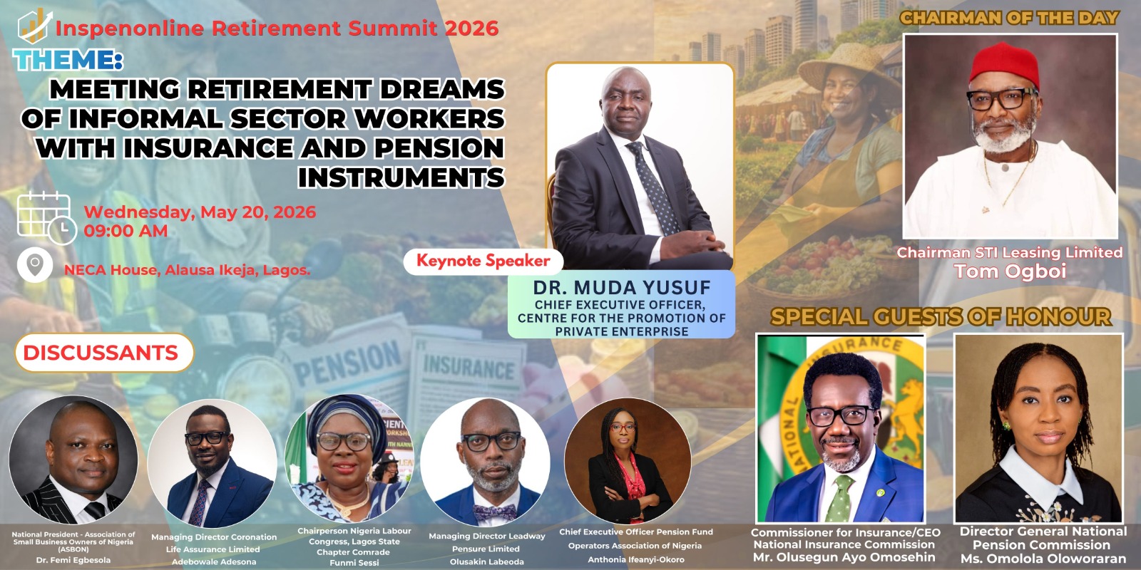 The 2026 edition, themed "Meeting Retirement Dreams of Informal Sector Workers With Insurance and Pension Instruments," is scheduled to hold on Wednesday, May 20, 2026, at the NECA House, Alausa, Ikeja, Lagos, starting at 9:00am prompt.